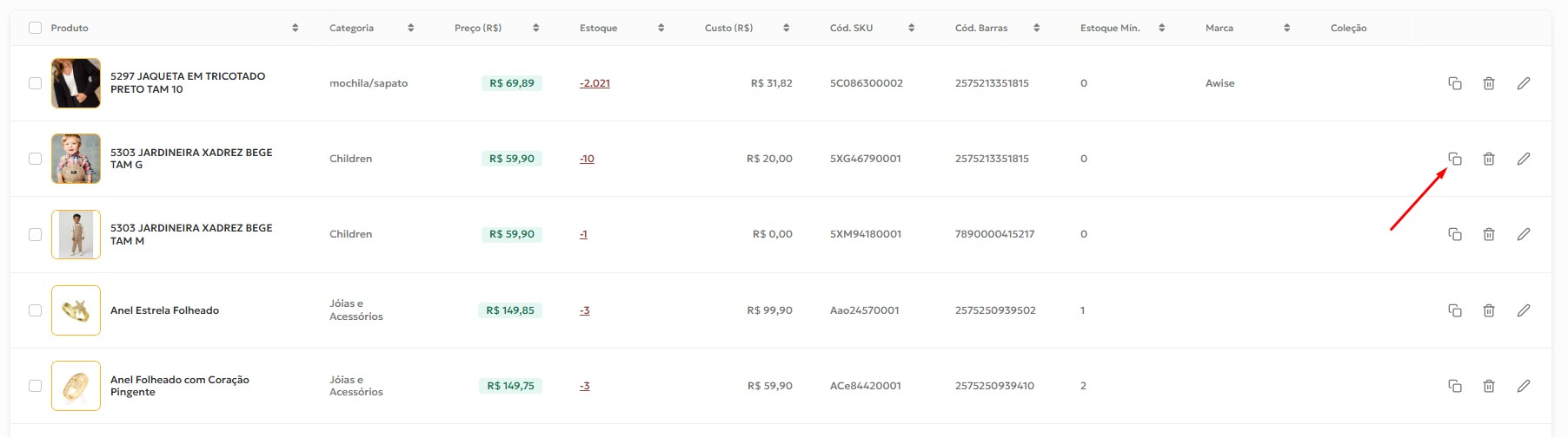 e feito, ao clicar no ícone de duplicação, o produto será aberto na tela de edição para fazer os ajustes e salvar!
