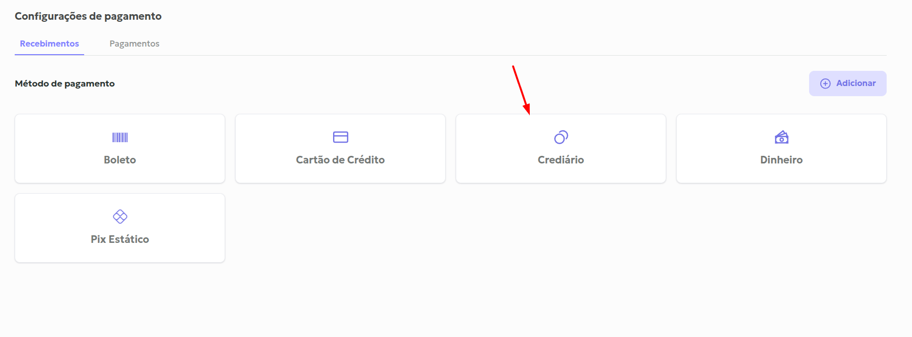 Configurações: Financeiro > Configurações de pagamentos
