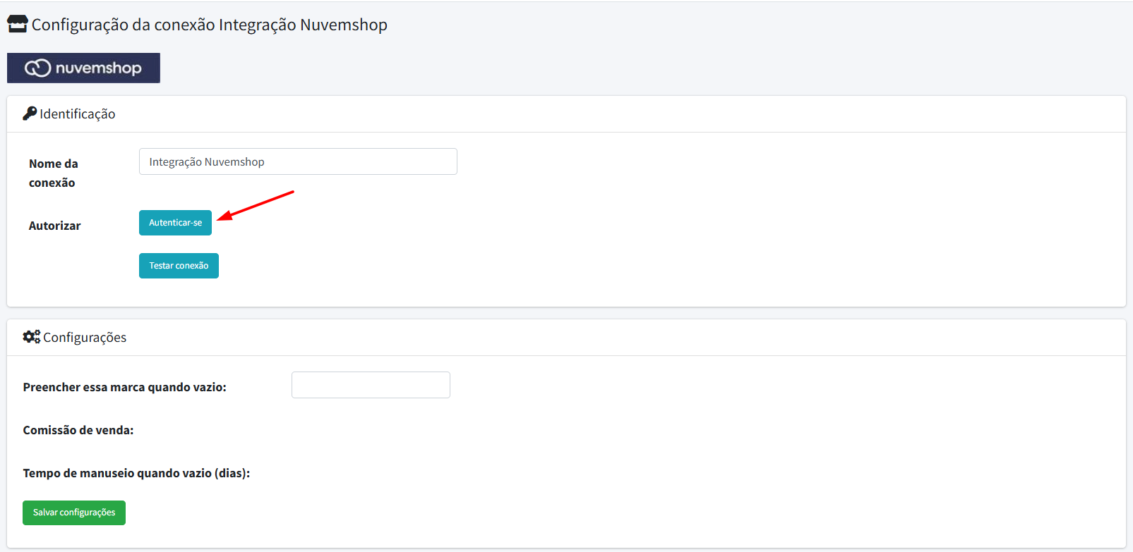 Após concluir a autenticação, clique em Testar conexão.