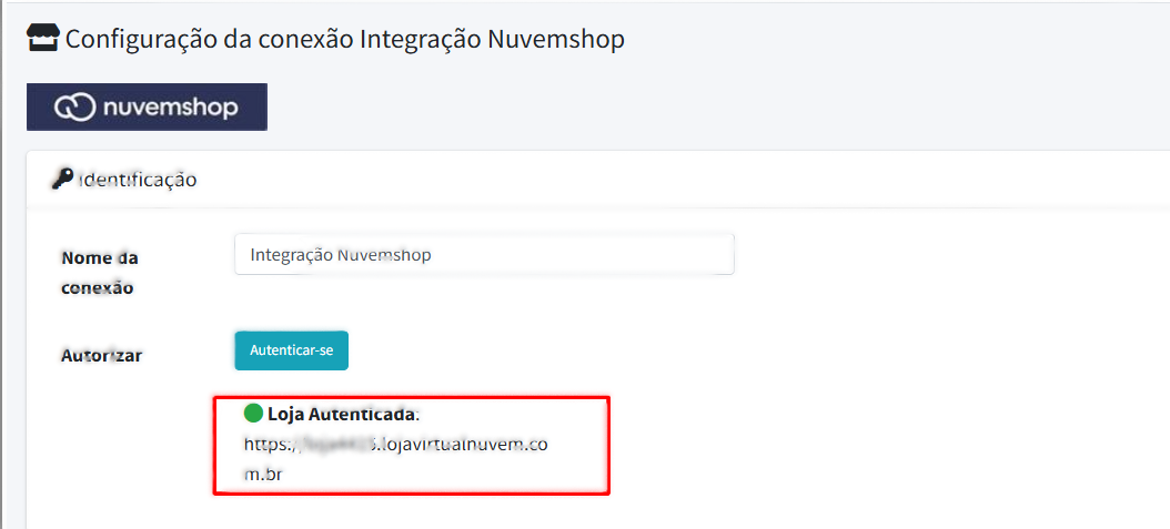 “Loja autenticada”, juntamente com o link da sua loja.