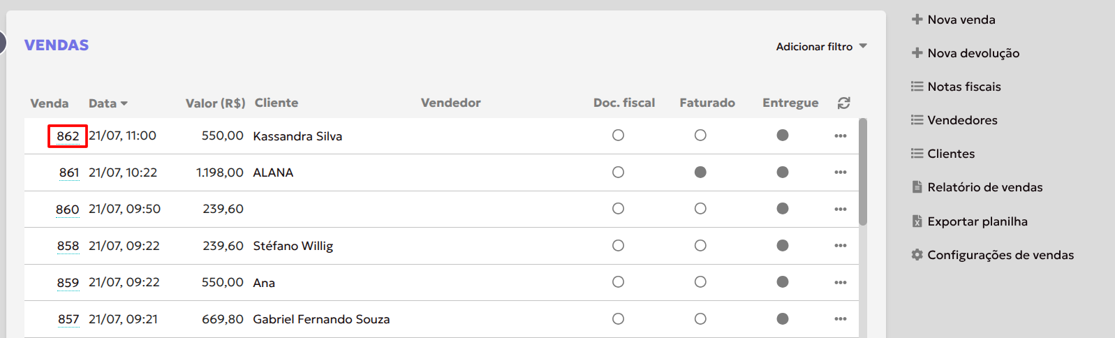 Basta clicar sobre o número dessa venda que você vai ser redirecionado para uma nova página detalhando as informações da sua venda.