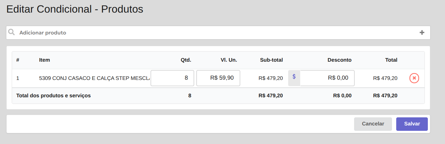 Após selecionar essa opção, será exibida a tela Editar Condicional – Produtos.