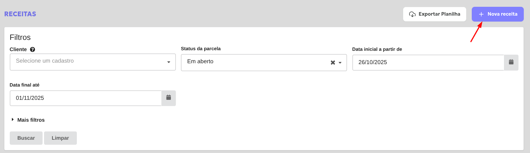Se a receita for lançada a prazo, as parcelas ficarão disponíveis para recebimento no menu Contas a receber.