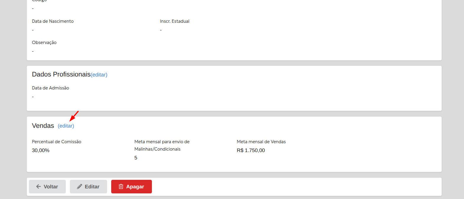 Se preferir, também é possível ajustar a comissão diretamente no cadastro do vendedor.
