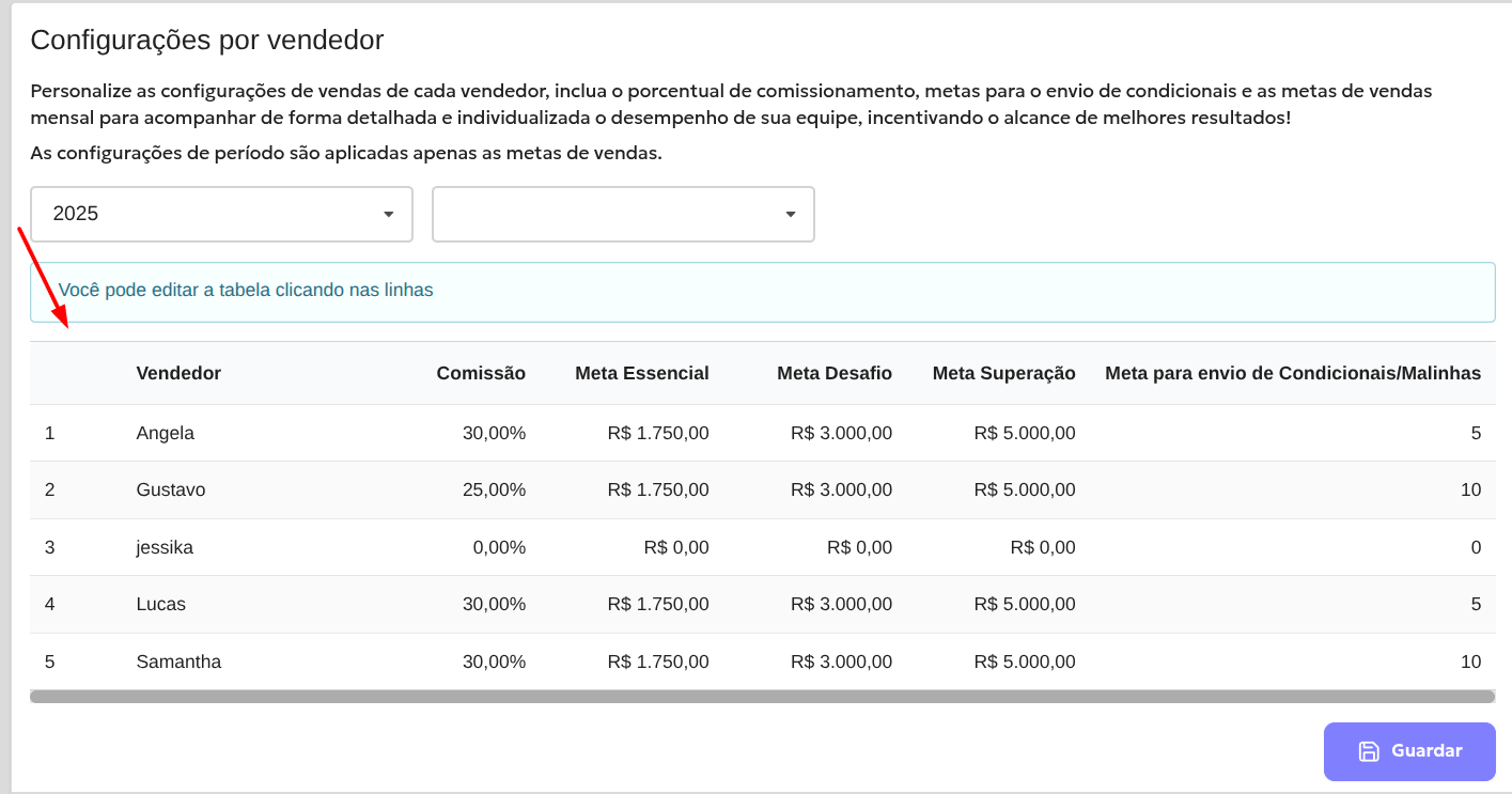 Como configura as comissões por vendedor