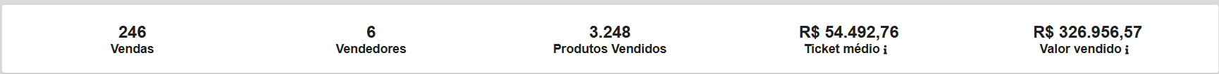 - Vendedores: Número de vendedores que fizeram vendas no período.