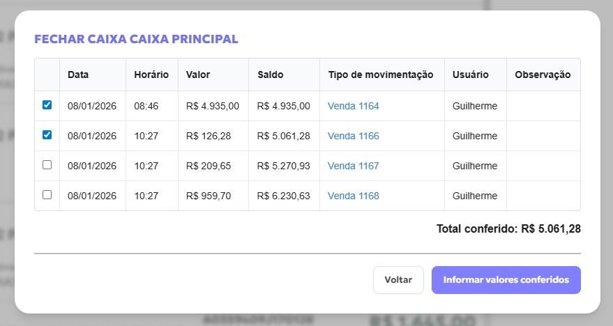 E o melhor: depois de conferir, você pode aplicar automaticamente o valor conferido direto na tela de fechamento — mais agilidade e menos retrabalho.