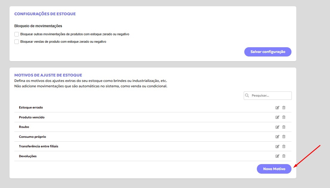 Ah, lembrando que você pode personalizar os motivos de movimentação sempre que quiser em: Central de Configurações > Configurações de estoque > Motivos de ajuste de estoque > Novo motivo.